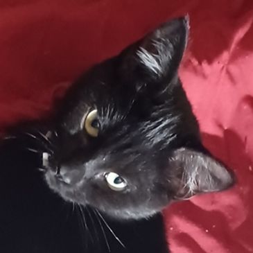 This beautiful black kitty came into Karina’s life one weekend in late February 2024 when a friend had inquired if she and her husband would watch her for a few days. This friend had another cat, a sister, but only wanted one and needed a break from having both around. Agreeing, they went after Karina got off work to collect the little void, bringing her to the trailer to meet the other four.